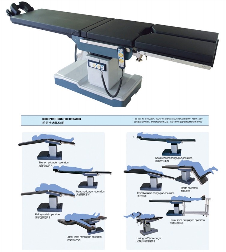 1. 采用精密的医用专用微电机,电动齿轮啮合机械结构,替代了传统的液压传动技术,无需定期添加液压油,无液压传动易漏油之忧。产品刚性优越,运行速度均匀,平稳,体位摆放精准,性能可靠,经久耐用。